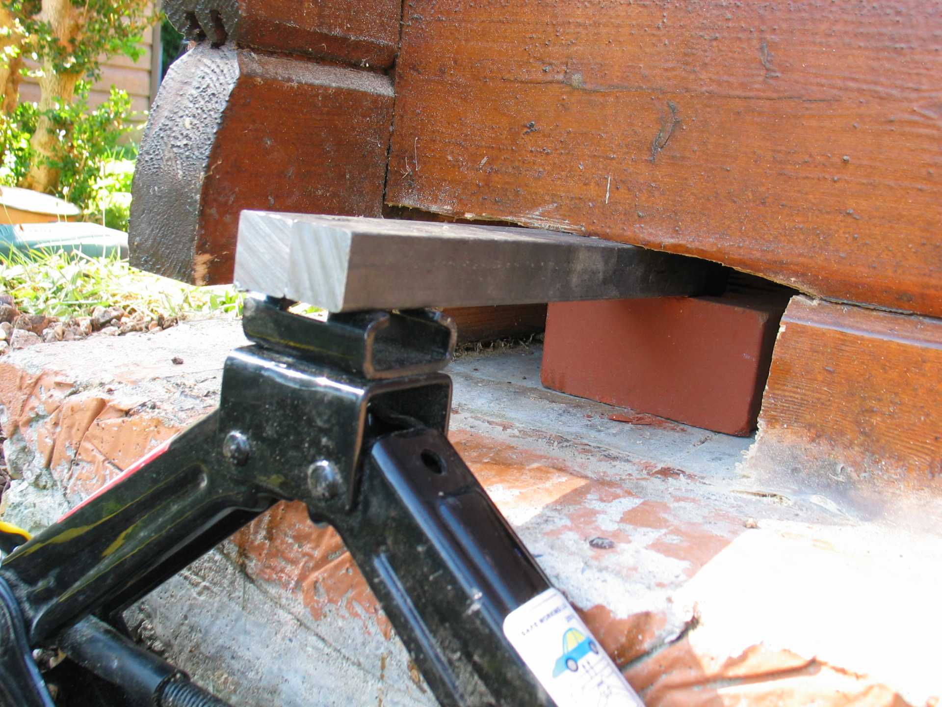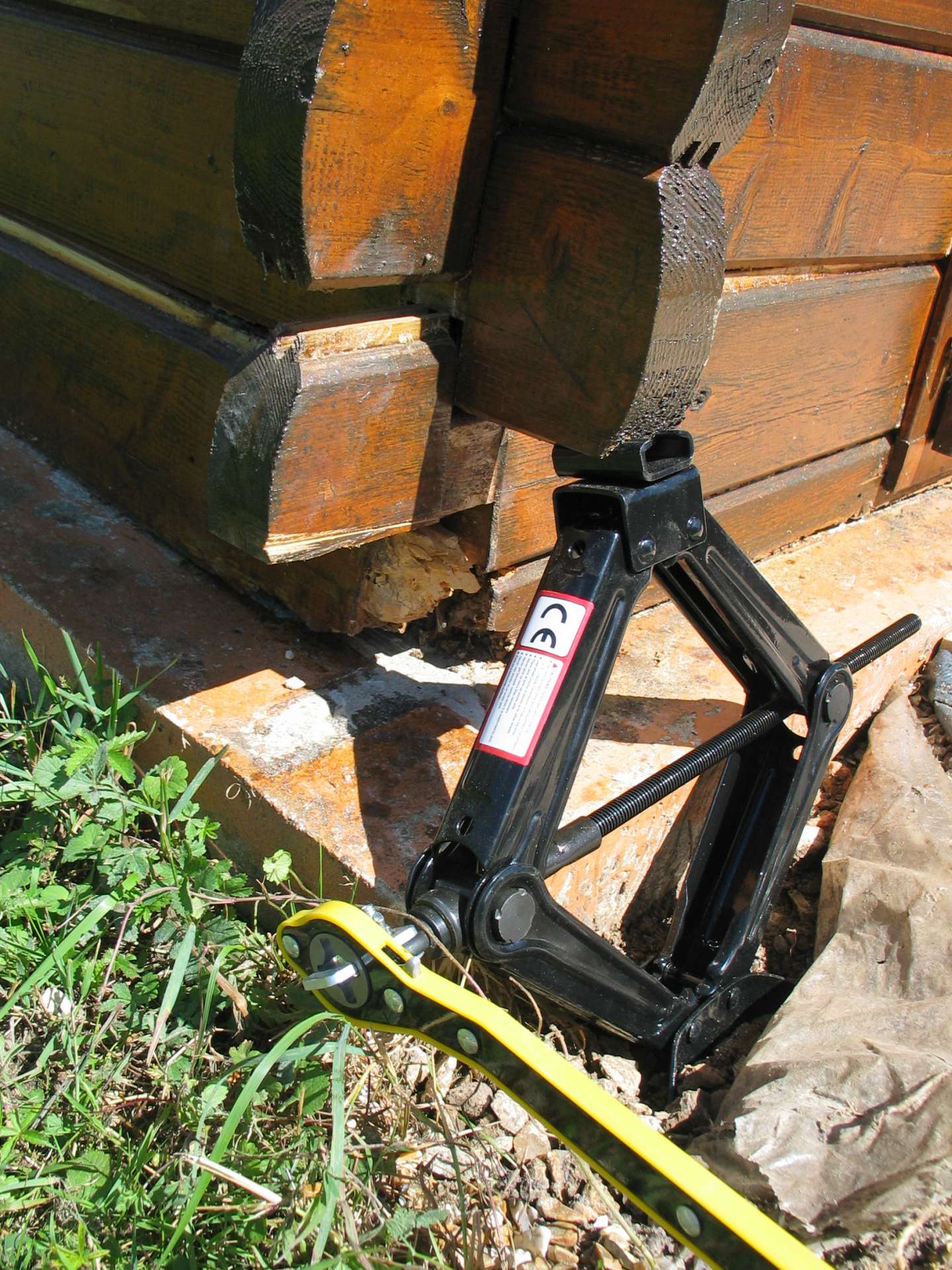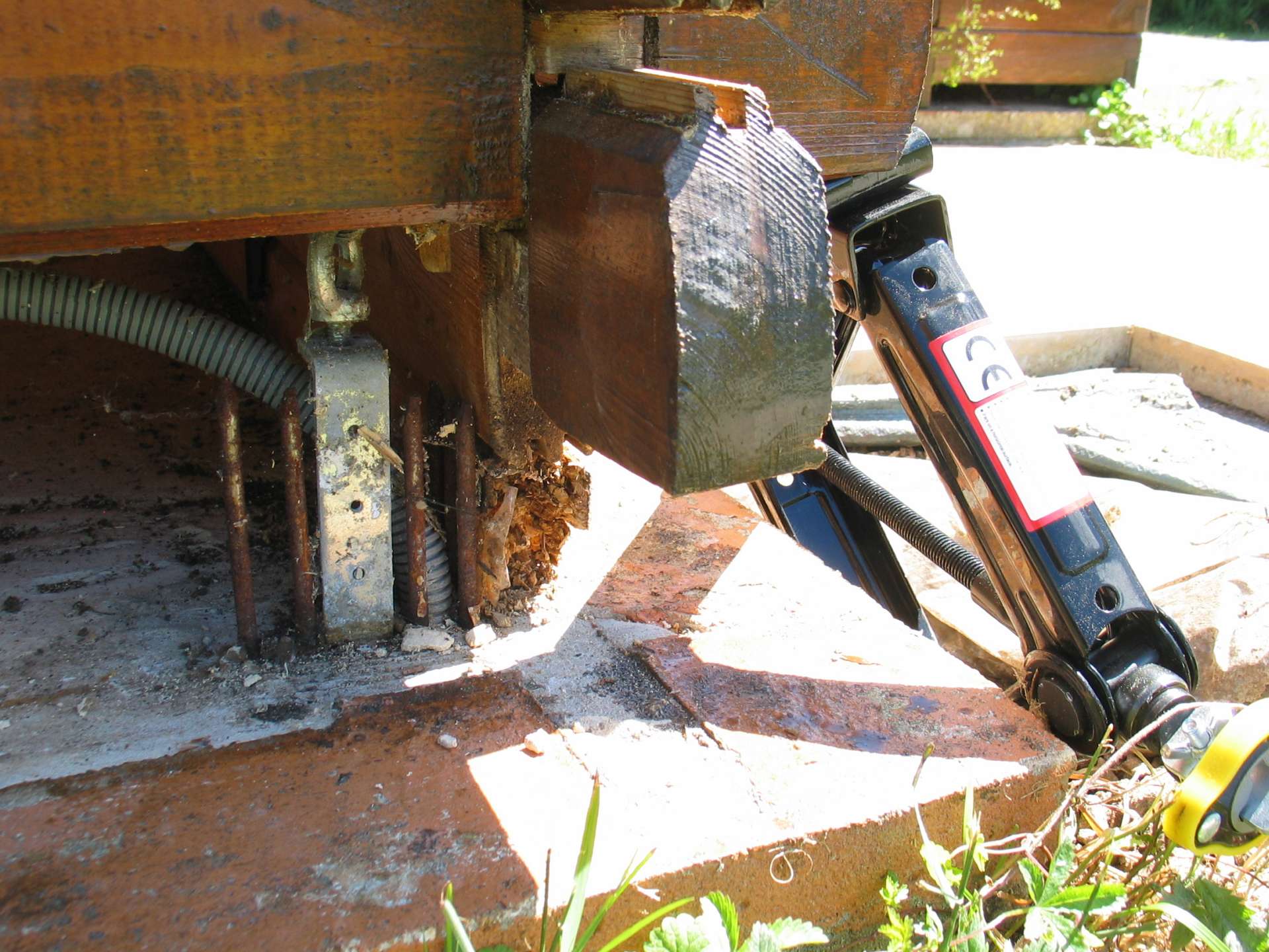 - côté extérieur, on soulève avec un cric. Mais cette méthode ne permet pas de soulever très haut (2 ou 3 cm maxi).