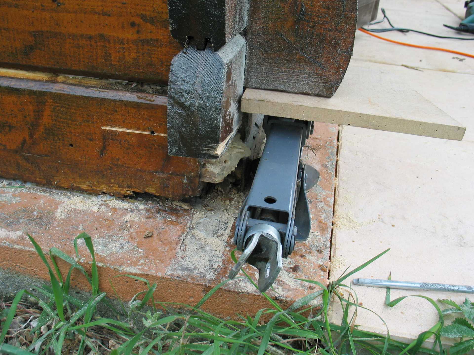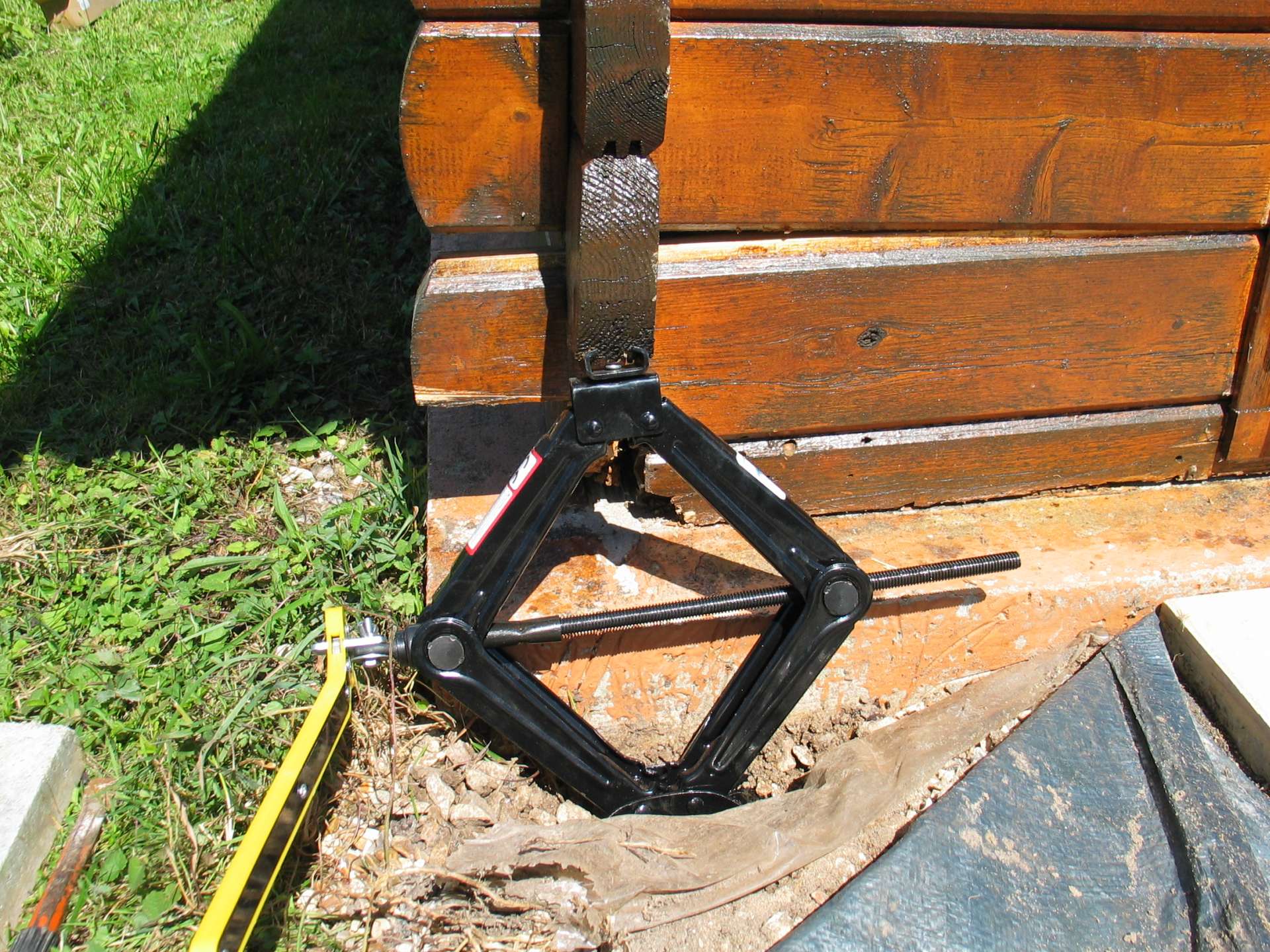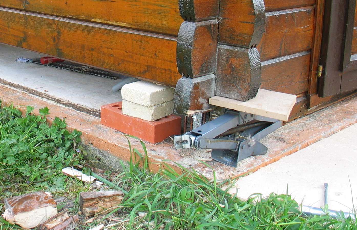 - côté extérieur, on soulève avec un cric. Mais cette méthode ne permet pas de soulever très haut (2 ou 3 cm maxi).