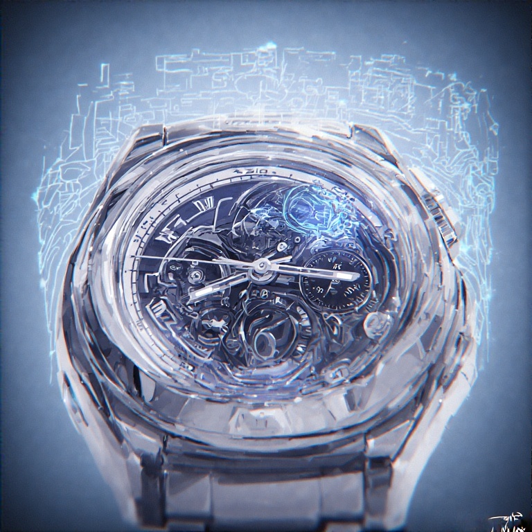 Image généré par une intelligence artificielle de montre futuriste avec un hologramme intégré