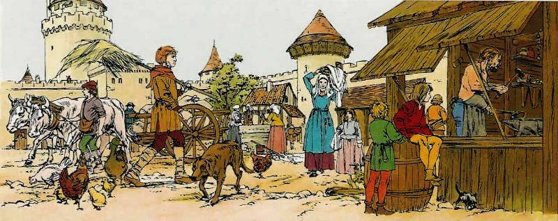 - La ville possède tous les aménagements permettant aux habitants d'exercer leur métier, leurs activités ou loisirs, conformément à ce que l'on pouvait trouver à cette époque.